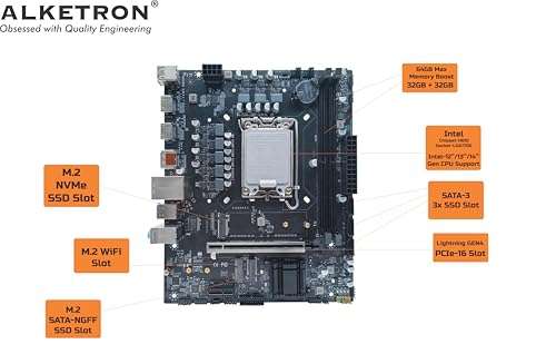 ALKETRON Gaming Desktop PC DDR4 Motherboard – H610 LGA1700-12th Generation i3/i5/i7/i9 core Processors – BuiltIn WiFi Slot, PCIe NVMe Gen3; USB3.0; HDMI; 64GB Max Memory Support – 1 Year Warrant