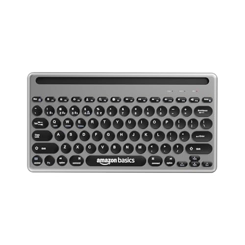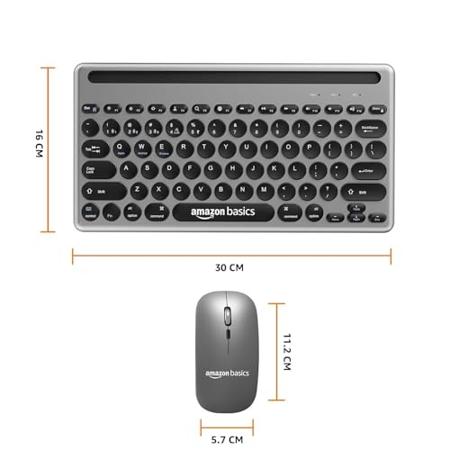 Amazon Basics Wireless Keyboard and Mouse Set with Bluetooth multiconnect, 2.4GHz Receiver,1600 DPI, Smartphone/Tablet Holder, Built in Rechargeable Battery