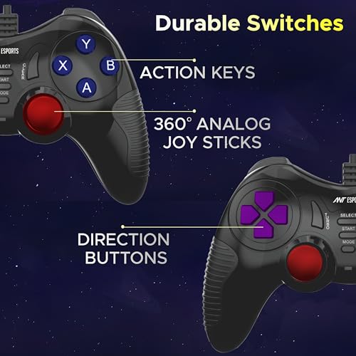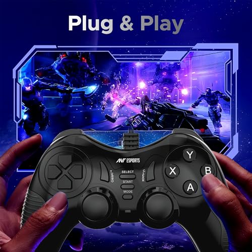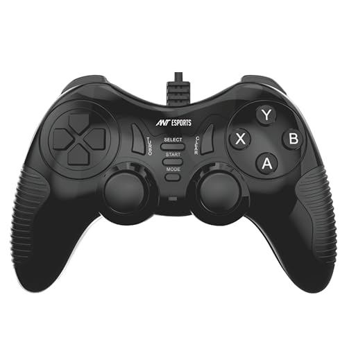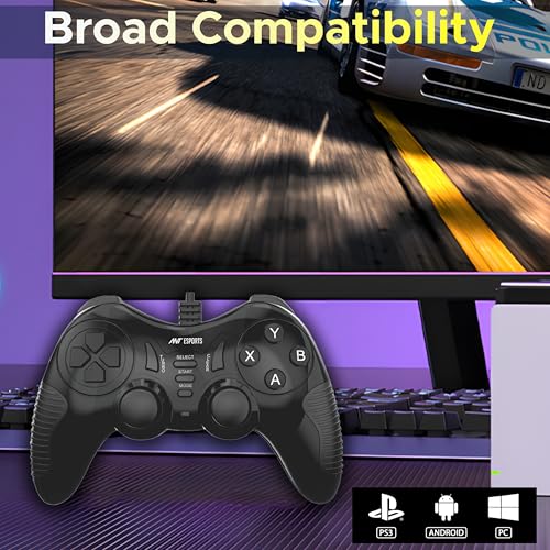 Ant Esports GP130 Wired Gamepad for PC, PS3, Android TV, Laptop – Dual Vibration USB Controller with Turbo Mode, 14 Buttons, Plug & Play, Ergonomic Design, Compatible with Windows & Steam_ Black