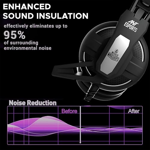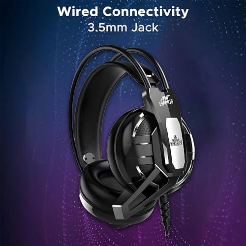 Ant Esports H520W Lightweight Gaming Over Ear Wired Headphones with Mic| 3.5MM Jack |50 MM Drivers | Compatible with PC/ PS4 / Xbox One/Nintendo/Mobile (Black)