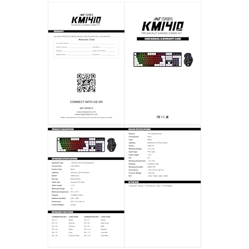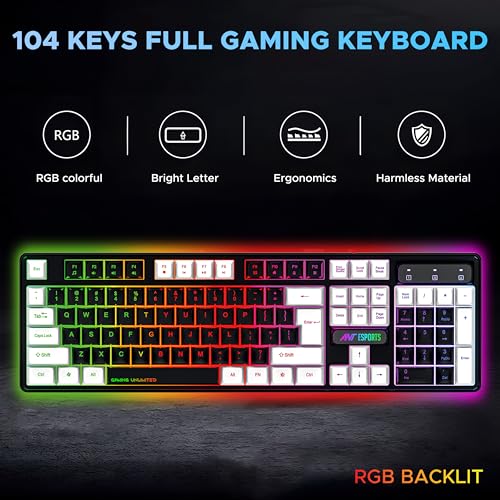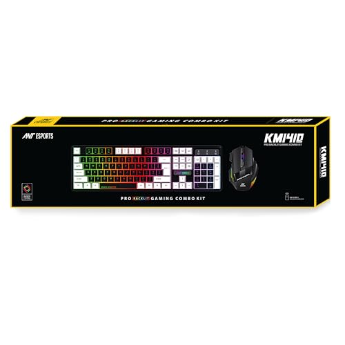 Ant Esports KM 1410 Wired Gaming Keyboard and Mouse Combo, RGB LED Backlit, 25 Keys Anti-ghosting Water Resistant Membrane Keyboard with 104 Keys, 1200-3600 DPI RGB 7D Mouse for PC/Xbox/PS4, Black White