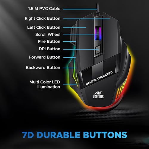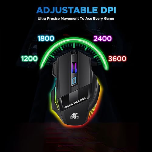 Wired 7D RGB Gaming Mouse — Ergonomic RGB Backlit Gaming Mouse up to 3600 DPI (user adjustable 1200/1800/2400/3600 DPI). Total 7 Buttons. The High-Precision Sensor delivers Pinpoint Accuracy while the Gaming Grade Micro Switches ensure longevity, greater durability, and extreme responsiveness, giving you an even greater edge over your competition.