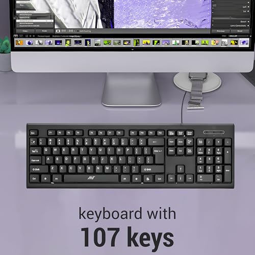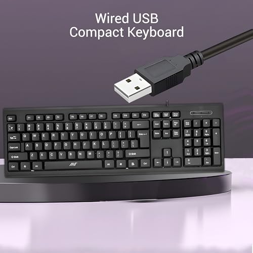 Ant – Wired Keyboard for PC, Laptop, Desktop, Computer, Notebook. USB Keyboard Compatible with Dell, Acer, HP, Samsung and More, with UK Layout – Black – 01