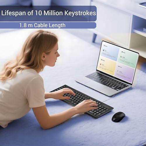 Wired USB keyboard – wired 150 cm USB cable for battery free reliability make this the ideal computer keyboard for the professional environment. Compatibility: Windows 7, Windows 8, Windows 10, macOS X 10.11, macOS 10.10 or above, macOS 10.9