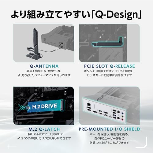 DIY-Friendly Design: Pre-mounted I/O shield, Q-Antenna, PCIe Slot Q-Release, M.2 Q-Latch, BIOS FlashBack, Flexible M.2 heatsink, BIOS Q-Dashboard, Q-LED Core