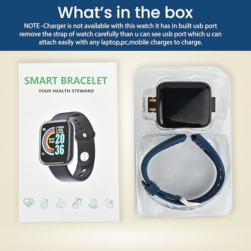 NOTE -Charger is not available with this watch it has in built usb port remove the strap of watch carefully than u can see usb port which u can attach easily with any laptop,pc,mobile charges to charge. For Any Product Issue Please Contact Us on Customer Care and please Install the App – FIT PRO to use the Smart watch