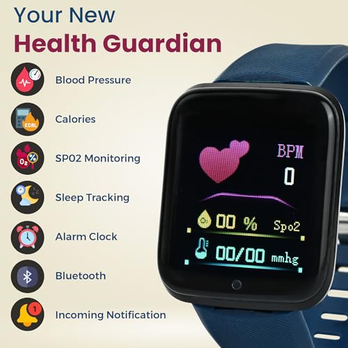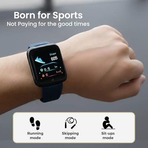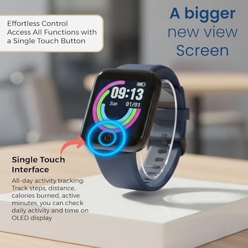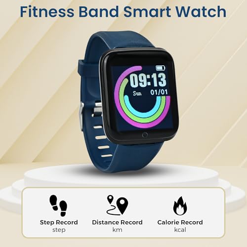 Bouncefit M I D116 Fitness Band Smart Watch for Men, Women, Boys, Girls, Kids – Single Touch Interface, Water Resistant, Workout Modes, Quick Charge Sports Smartwatch – Blue I