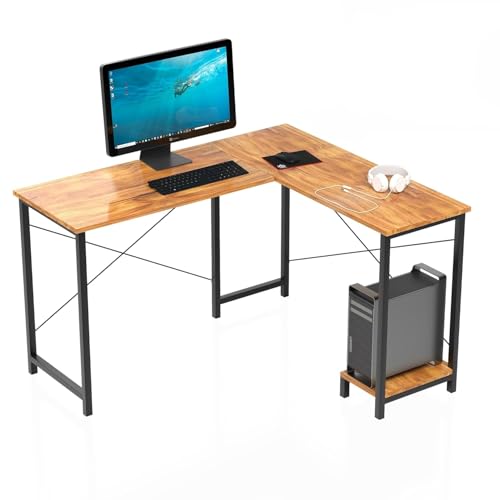 Callas L Shaped Computer Desk – Gaming Corner 50 Inch PC, Computer Corner Desk, Writing Workstation with Wooden Desktop CPU Stand for Home, Office, Room & Small Space (Walnut – ST-22 Walnut(R))