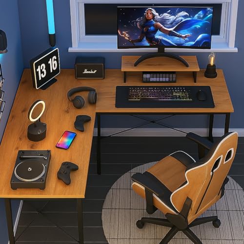 Smart Storage Solution โ€“ Equipped with a sturdy side shelf to organize books, gaming gear, or CPU tower, this corner desk saves space and keeps your work or gaming station clutter-free.