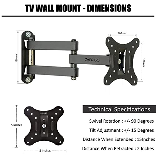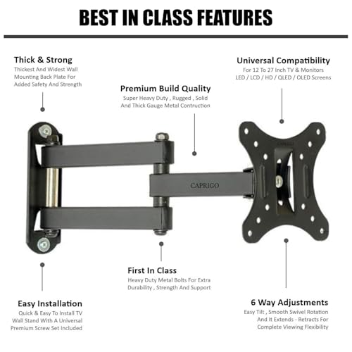 Caprigo Heavy Duty TV Wall Mount Stand for 12 to 27 inches LED/LCD/Monitor Screen’s, Full Motion Rotatable Universal TV & Monitor Wall Mount Bracket with Swivel & Tilt Adjustments (M418)