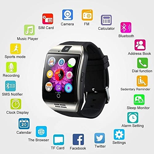 Product Description: This item is a Q18 smartwatch with a sim slot design, one is a sim card slot and the other is a TF card slot. It acts as a phone with a micro SIM card, so you can send messages and make a call via the SmartWatch. There is no need to worry about its storge for it supports TF card maximum 32G. It supports most of the functions supplied on cellphone while more portable than it. Supports pedometer analysis, selfie, sedentary remind, sleep monitoring, anti-lost, remote take picture, Bluetooth connection, music player, handsfree call, call sync, MP3 audio player.The high sensitive capacitive touch screen offers you a good touching experience. For Android, all functions are activated. Functions including pedometer,calendar,call sync,clock,music player,handsfree call. Elegant Design: 2.5D full arc capacitive touch screen gives you a comfortable watching feel.