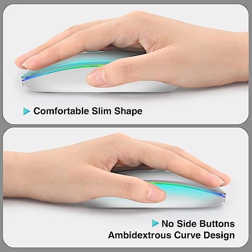 【Color Light Sleek Mouse Wireless】The upgraded version वायरलेस माउस with the LED lights, 5 different color changes randomly while in use, offering soothing lighting, more fun to the boring office life. There’s a switch on the LED mouse, you can turn on/off lights freely (Warm Tips: When the mouse is working, the LED STOP flashes; when the mouse is not working, the LED flashing.) Please Note: the LED light on the right side will be a little dimmer as there is a cylindrical strip of embedded battery in the right side of the mouse