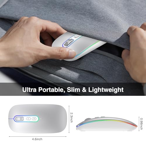 【Dual Mode Mouse for Laptop】The laptop mouse offers an easy switch between Bluetooth 5.1 and 2.4G wireless connections, bringing stable and reliable performance. Stable connection with quick response and smooth tracking. Bluetooth cordless 5.1 ensures quick response and precise movement, while 2.4G provides plug & play convenience, no need for a driver (USB-A receiver stored in the bottom of the mouse)