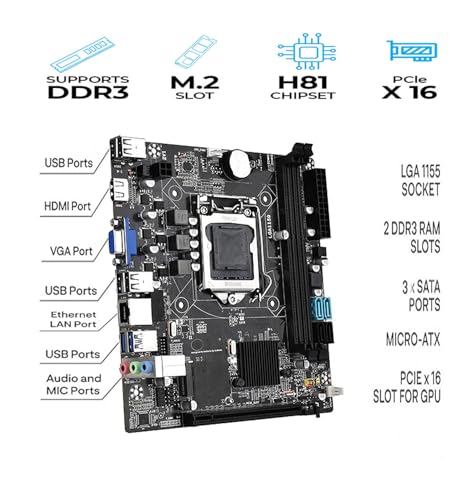 H81 Chipset MotherboardVGA & HDMI Port6 USB 2.0 Port2 USB 3.0 PortRJ45 LAN PortAudio Port2 RAM Slot3 Sata port