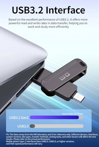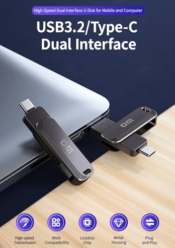 DM PD237 128GB USB 3.2 Gen1 Metal Pendrive, 450Mb/s, Super Fast Data Transfer Pen Drive Compatible with Audio Player, Desktop Computer, Television, Tablet, Laptop (128GB) Product description: DM PD237 USB-C 3.2 Flash Drive 128GB – Dual Port (Type-C & USB-A) Memory Stick for Smartphones, Computers, Tablets Color: Metal Black Memory Storage Capacity :128GB Brand :DM Hardware Interface USB Read Speed: upto 450 Megabytes Per Second About this item The 2-in-1 flash drive with a reversible USB Type-C and a traditional Type-A connector. Seamlessly move content between your USB Type-C smartphone, tablets and Macs and USB Type-A computers Mobile device requires USB Type-C port and On-The-Go (OTG) support. Read speeds up to 450MB/s. Write speed lower and vary by capacity. USB Type-C port with USB 3.2 Gen 1/ USB 3.0 support required. Based on internal testing; performance may be lower depending upon host device, interface, usage conditions and other factors. 1MB = 1,000,000 bytes.