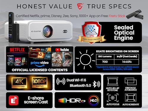 Special feature : 【Segment First】 – Dual OS Fire TV Certified Netflix, Prime & More. FULL Dust Free + Auto Focus & Keystone + Auto Obstacle Avoidance + Auto Screen Fit – Quad Core CPU – MALI GPU – 2GB RAM + 32 GB ROM. Certified with widevine L1 NETFLIX, Prime , Hotstar and other OTT on TV Stick | 1st 15 watt DSP Sound Processor on 12 Watt Stereo Speaker with box radiators
