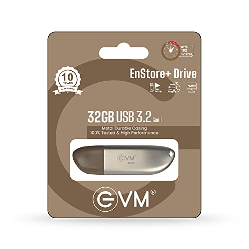 EVM EnStore+ 32GB Metal USB 3.2 Pendrive – High Performance with up to 100MB/s Read – Durable Metal Casing – Ideal for Fast Data Transfer and Storage Solution – 10 Year Warranty – (EVMPD3.2/32GB)