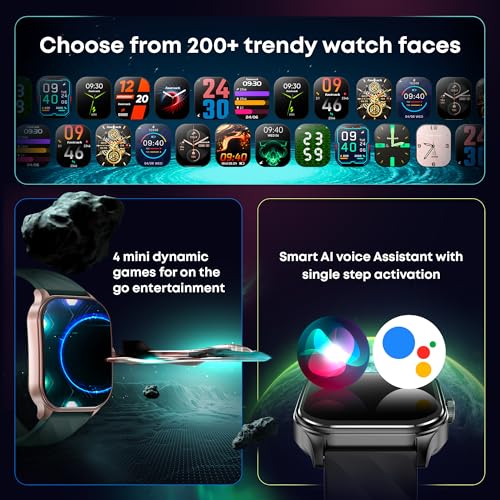 Advanced 110+ Sports Modes, 200+ Watchfaces, In-Built Games, AI Voice Assistant and many more handy features at a single tap; Health Monitoring with Auto Stress monitor, 24×7 Heart Rate, Sleep Tracker, Spo2 and Women’s Health