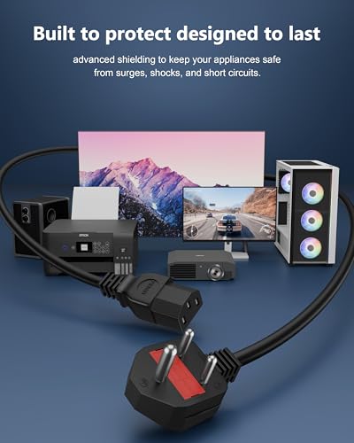▶UNIVERSALLY COMPATIBLE: Fits almost anything that uses a three-pin power connection Will fit all brands Computer Desktop PC, Gaming CPU, TV, Monitor, Game Console, scanners, PSU, Laser 3D Printer, Projector, Server, Guitar Amp, Amplifier, Subwoofer, AV Receiver, Sports Equipment, Treadmill, Pressure Cooker, Speaker System, LCD Plasma DLP Screen ceiling mounted projector, powered speakers and other appliances with similar plug.