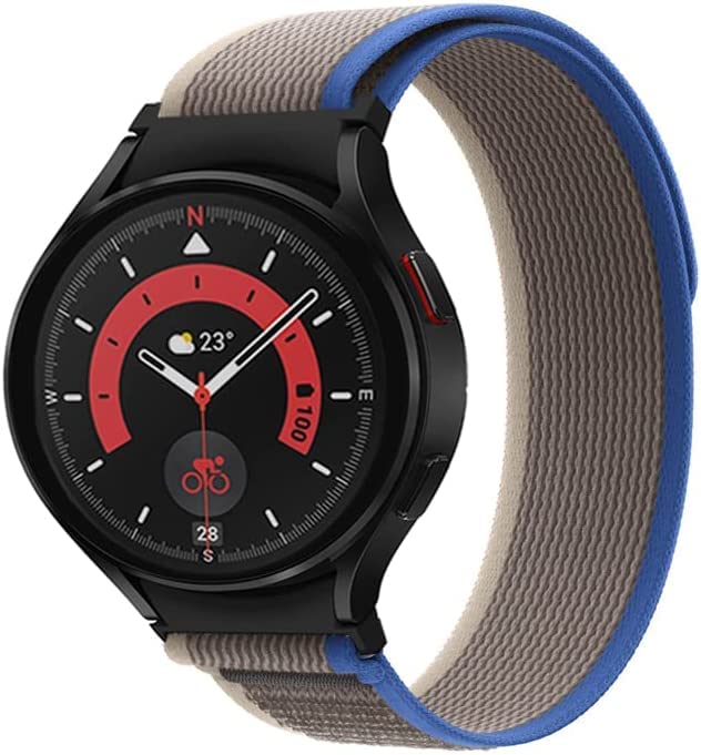 FOLX FAB12 Trail Velcro Nylon Sports Bands Compatible for Samsung Galaxy Watch 4 Band & Galaxy Watch 5 Band 44mm 40mm/Watch 5 Pro Bands 45mm/Galaxy Watch 4 Classic Bands 46mm 42mm,20mm Sport Strap Wristbands for Men Women [ NO GAP ARC EDGE ] (BLUE & GREY)