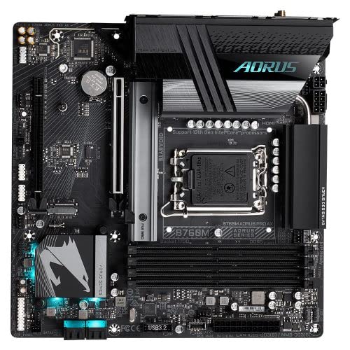 GIGABYTE B760M AORUS PRO AX INTEL 12TH AND 13TH GEN SUPPORT LGA 1700 DDR5 MICRO-ATX Motherboard has The latest Wireless solution 802.11ax Wi-Fi 6E with new dedicated 6GHz band, enables gigabit wireless performance, provides smooth video streaming, better gaming experience, few dropped connections and speeds up to 2.4Gbps. Moreover, Bluetooth 5 provides 4X range over BT 4.2 and with faster transmission. Smart Antenna 2X signal strength compared to traditional antenna design. AORUS Antenna with smart antenna function for the best WIFI signal transmitting.