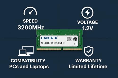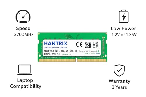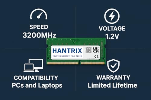High-Speed 3200MHz Run apps, games & tasks with lightning-fast response.Universal Compatibility Works as a direct upgrade/replacement for Samsung, SK Hynix, Crucial, Micron & more.Energy Efficient 1.2V low-power design reduces heat & extends laptop battery life.3-Year Replacement Support Backed by Hantrix for reliability & peace of mind.