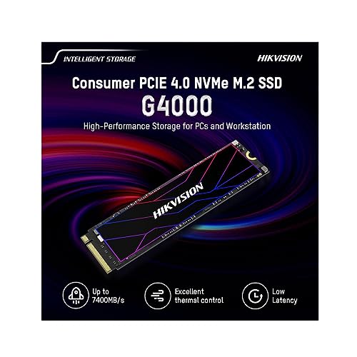HIKVISION G4000 Internal GAMING SSD 1024GB/ Extremely fast read and write PCIe interface, PCIe Gen4x4/ maximum read speed of 7450 MB/Max. Seq. Write 6600 MB/s/ Internal Solid State Drive/ 3D NAND Flash Memory/ Anti-shock and anti-fall /Applicable to personal computers, laptops, PS5, etc.