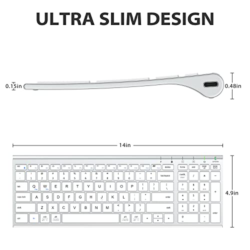 DELICATE & PREMIUN-LOOKING DESIGN – iClever wireless keyboard combines high-end ABS in the front with gorgeous metal material in the rear, conforming to your pursuit of advanced quality. It also boasts luxury silver finish and sophisticated shape, which gives you a sense of elegance and beauty.