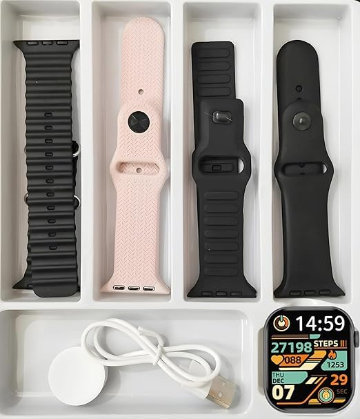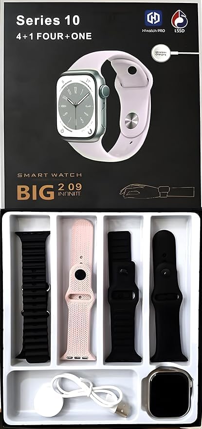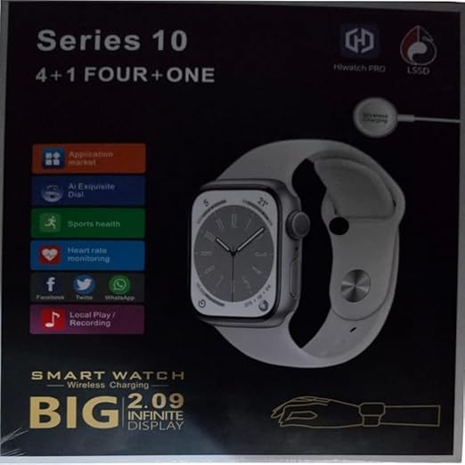 Introducing the Series 10 ,20 ultra2Smart Watch, a sophisticated blend of style and technology. This elegant timepiece features a sleek design with a premium white band and a stunning grey metallic finish. The large, crisp display showcases a beautifully designed watch face with clear, elegant numerals and hands. Compatible with both HIwatch PRO and LSSD systems, this smartwatch comes equipped with wireless charging capability for convenient power-ups. The ‘4+1 FOUR+ONE’ feature set delivers comprehensive functionality for your daily needs. The BIG 2.09 infinite display offers ample screen real estate for all your notifications and interactions. The comfortable, adjustable strap ensures a perfect fit for any wrist size, while the sophisticated design makes it suitable for both casual and formal occasions. This versatile smart companion seamlessly integrates into your digital lifestyle, offering both functionality and fashion in one premium package.
