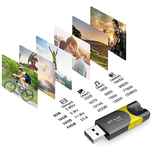 Capacity: Meet your needs for daily use at work, school, home, or traveling for photos, music, videos, file storage, and transfer. For each 64 GB, you could store 23 Hrs of Video (1080P/ 6Mbps), or 20,000 Photos (10MP/ 3 Mb), 15,000 Songs (4 Mb), or 150,000 + Office Word doc (400 Kb).
