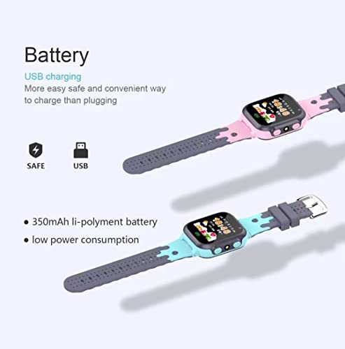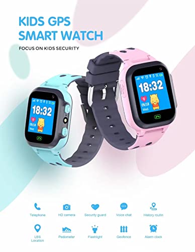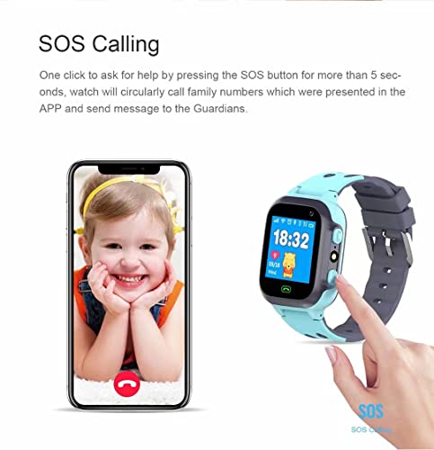 Kids Smart Watch Sim Card Call Phone Smartwatch for Children SOS Photo Waterproof Camera LBS Location Tracker Gift iOS Android (Blue)