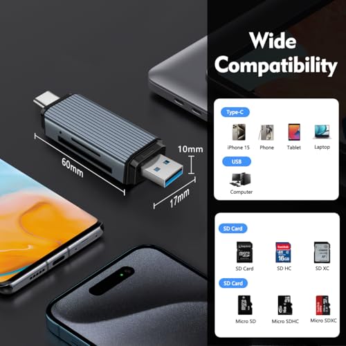 Compatibility: The sd/micro sd card reader support all iPhone with iOS 8.0 and up and iPads with iOS 8.0 or later/OTG Android phone/computer and other devices with usb port,Maximum support memory card capacity 512GB.(the package does not include sd card and micro sd card)