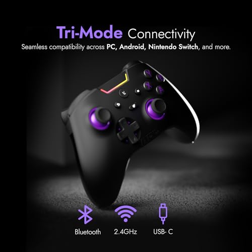 🔗 Tri-Mode Connectivity : Connect the Kreo Surge XB Gaming Controller via Bluetooth, 2.4GHz dongle, or USB-C wired—compatible with PC, Android, Nintendo Switch & more for total flexibility.