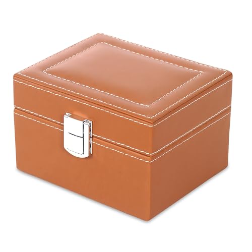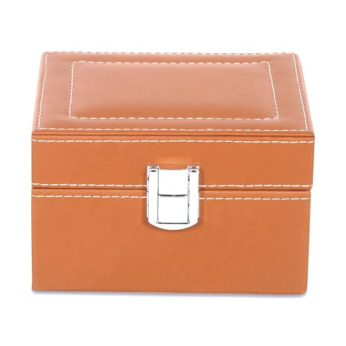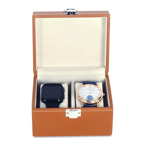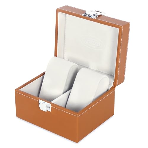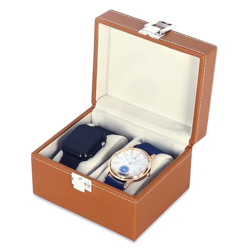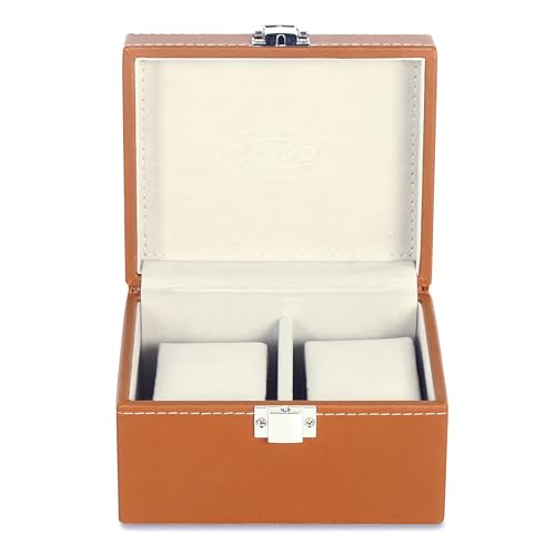 LEDO Men’s and Women’s Watch Box Holder Organizer Case In 2 Slots of watches In PU Leather with Tan & Cream color