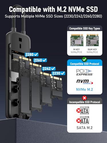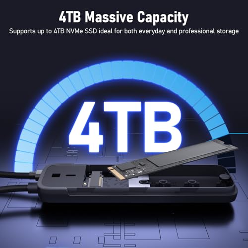【Supports up to 4TB NVMe M.2 SSD】This NVMe SSD enclosure supports NVMe M-Key/B&M Key SSDs with capacities of up to 4 TB, making it perfect for daily backups, professional projects, and storing large amounts of data with ease