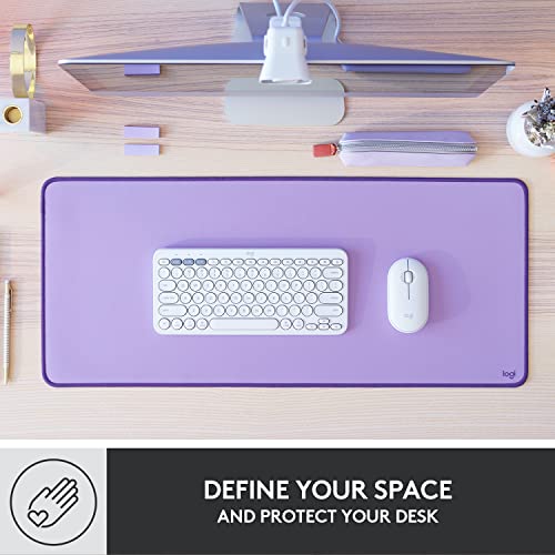 Elevate your desktop: Add colour, style and comfort into your workspace and keep your desk protected with the Logitech Studio Series soft cloth desk mat in Lavender, Dark Rose, or Mid Gray