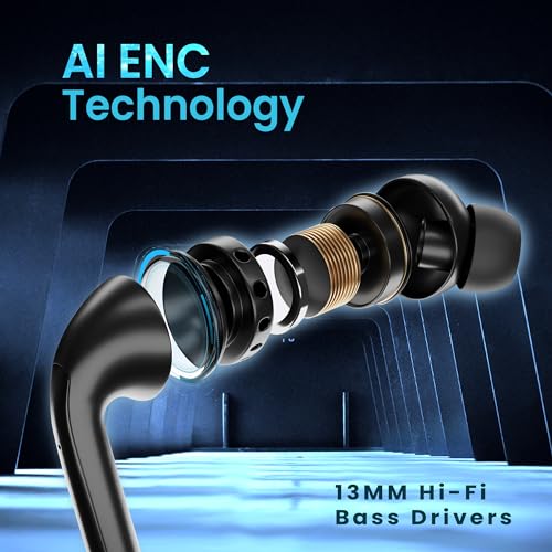 Immersive Sound with 13mm Hi-Fi Bass Drivers: Delight in an immersive audio experience with 13mm Hi-Fi Bass drivers delivering crystal-clear sound, deep bass, and crisp highs. These wireless earbuds boast an extended frequency response from 20Hz to 20KHz, ensuring superior audio quality for your music and calls.