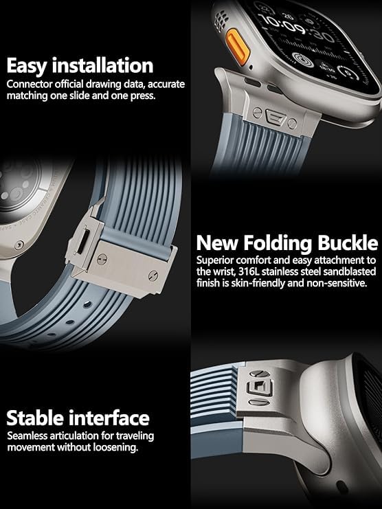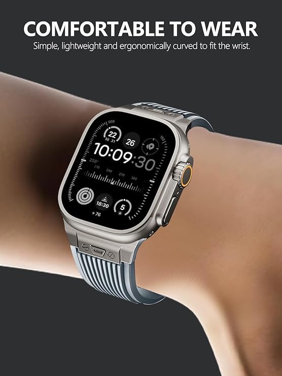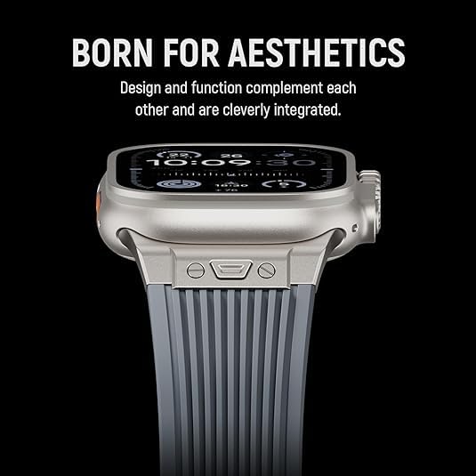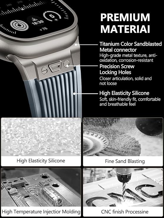 SANDBLASTED METAL CONNECTOR: The metal connectors on our ultra band are sandblasted for a premium metallic appearance, and the titanium color can match perfectly with the titanium case of the watch ultra, achieving a combination of luxury fashion and practical function, easy to install with a slide.