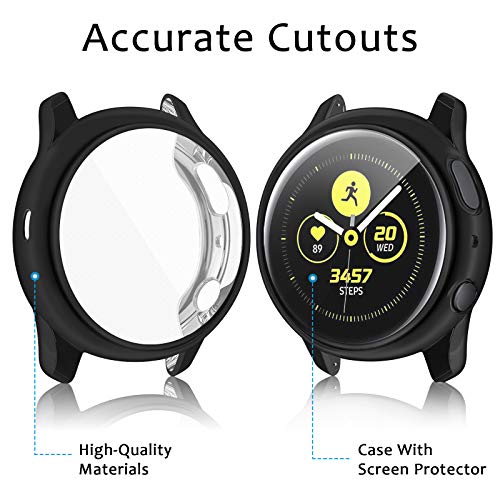 Meliya TPU Case Cover with Attached Screen Protector for Samsung Galaxy Active 2 44mm, Soft Clear Screen Protector Cover, Full Guard Cases, Anti-Scratch and Shockproof Cover for Galaxy Active 2(Black)