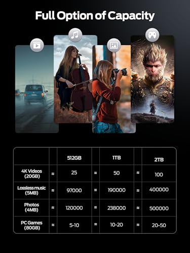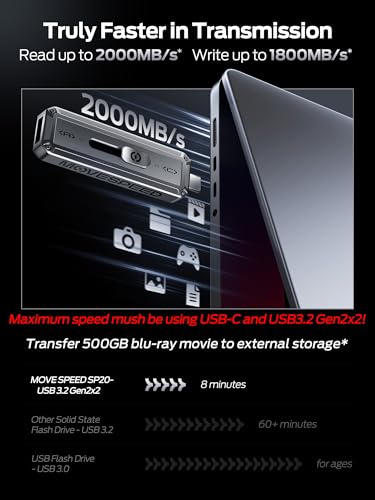 【Ultra-Fast Speed】USB3.2 Gen2x2 interface, offering a read speed of up to 2000MB/s and a write speed of 1800MB/s. Save more time and energy when transmitting and uploading files, and greatly improve work efficiency. NOTE: The data source is from the laboratory. Please use the necessary professional software, professional equipment, as well as the USB3.2 Gen2x2 interface or Thunderbolt 5 interface