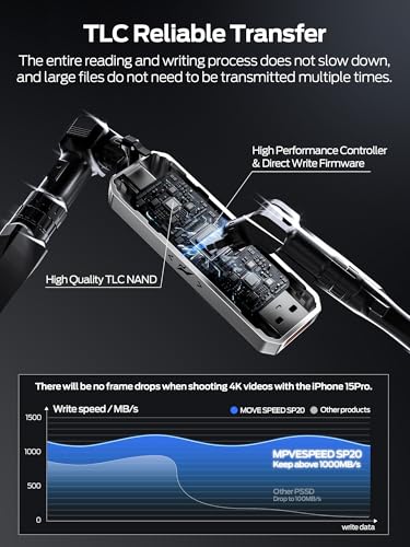 【4K ProRes】MOVE SPEED SP20 SSD provides 4K 60Hz ProRes HDR video capture for iPhone 17/16/15 series. This portable SSD can easily run on a variety of mobile devices, ensuring that it is always available in your pocket. (Device must support 4K, such as iphone15 Pro or later)