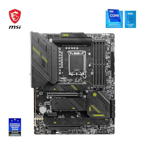 MSI MAG Z790 Tomahawk MAX WiFi Motherboard, ATX – Supports 14th/13th/12th Gen Intel Core Processors, LGA 1700 – DDR5 Memory Boost 7200+MHz/OC, 1 x PCIe 5.0 x16, 1 x M.2 Gen5, 2.5G LAN, Wi-Fi 7