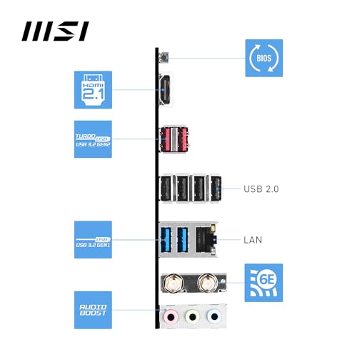WI-FI CONNECTIVITY – Network hardware includes Wi-Fi with Bluetooth 5.3 & 1Gbps LAN; Rear ports include USB 3.2 Gen 2 Type-A (10Gbps), HDMI 2.1, and 7.1 HD Audio with Audio Boost