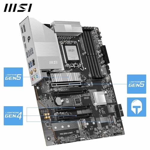 MSI PRO Z890-S WiFi Gaming Motherboard – ATX – Supports Intel Ultra Core Processors (Series 2), LGA 1851 – DDR5 Memory, 1 x PCIe 5.0 x16, 1 x M.2 Gen5, 2.5G LAN, Wi-Fi 7, Frozr AI Cooling