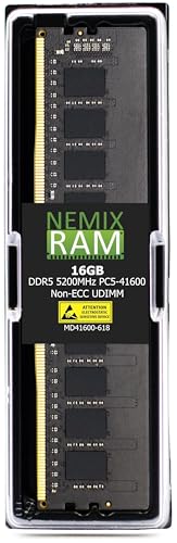 NEMIX RAM 16GB (1X16GB) DDR5 5200MHz PC5-41600 1Rx8 1.1V 288-PIN NON-ECC Unbuffered UDIMM Desktop PC RAM Memory