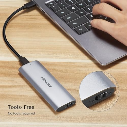 Experience lightning-fast data transfer with the Sounce NVME SSD Enclosure, featuring a 10 Gbps high-speed USB 3.2 interface and equipped with USB-C to USB-C and USB-C to USB-A cables for superior read/write speeds. Its premium aluminum alloy design includes a thermal pad for optimal heat dissipation, ensuring safe operation without the need for a cooling fan. Enjoy tool-free, plug-and-play installation and hot-swapping support, all within a compact, portable design. Universally compatible with Windows, Mac OS, Linux, and Chrome OS, it supports M.2 NVMe SSDs in various sizes, but not M.2 SATA-based SSDs. Built for reliability, it includes short-circuit, over-current, and over-heat protection, along with S.M.A.R.T functionality and an LED status indicator for complete operational transparency.