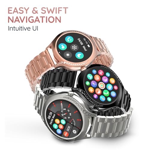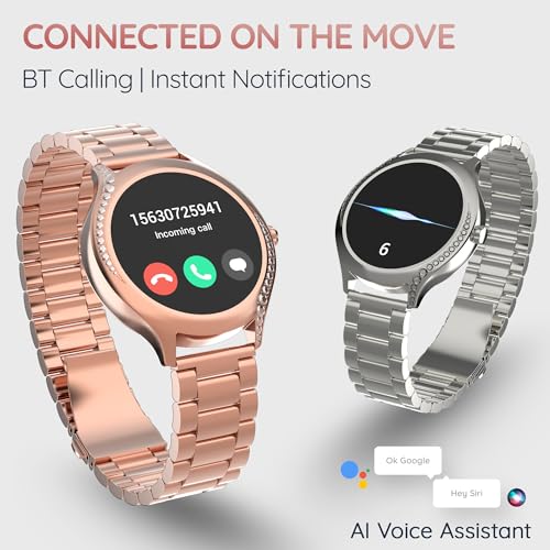 Pebble Ritz 1.19″ (3.02 cm) HD Display, BT Calling, Female Health, Heart Rate Monitoring, Zen Mode, Multiple Watch Faces, AI Voice Assitance, Multiple Sports Mode – Metal Gold
