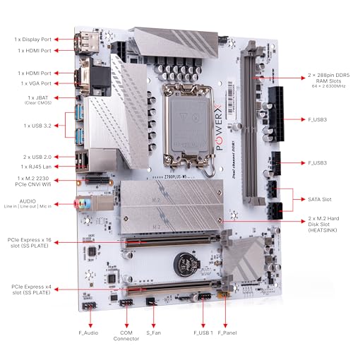 The Z790 DDR5 Motherboard supports 12th to 14th Gen CPUs on the LGA 1700 socket. With DDR5 RAM up to 128GB and speeds up to 6400 MHz, it ensures top-tier performance for gaming, content creation, and multitasking.Packed with features like dual NVMe slots, PCIe x16 support, and triple display outputs, this Micro ATX board also includes fast 2.5Gb LAN and multiple USB ports, making it a compact yet powerful choice for modern builds. The Z790 DDR5 Micro ATX Motherboard delivers high-end performance for next-generation CPUs. Built around the powerful Z790 chipset, this board supports 12th, 13th, and 14th Gen Core processors on the LGA 1700 socket. It features advanced DDR5 memory support with speeds up to 6400 MHz and a total capacity of up to 128GB, ensuring blazing-fast multitasking and data access. With a rich I/O layout including HDMI, DisplayPort, VGA, USB 3.2, and a 2.5Gb LAN port, this motherboard ensures robust connectivity.