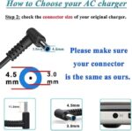 Connector size: interior diameter: 3.0mm; external diameter: 4.5mm (Please make sure the charger adapter fit your laptop before you buy.
