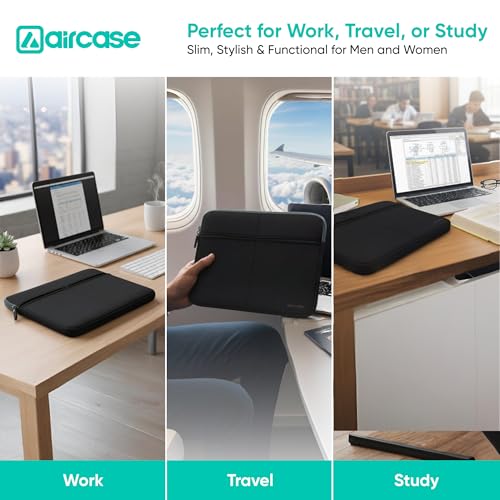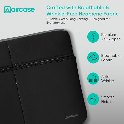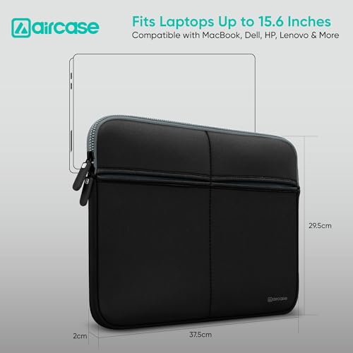 AirCase Laptop Sleeve available is front and back 2-pocket for keeping your charger, USB cables, headphone, powerbank and other accessories with laptop.; Designed for most 15-Inch to 15.6-Inch Laptops and Ultrabooks, Compact size, light weight, and easy to use. Practical design and exquisite workmanship, Environmentally friendly material.